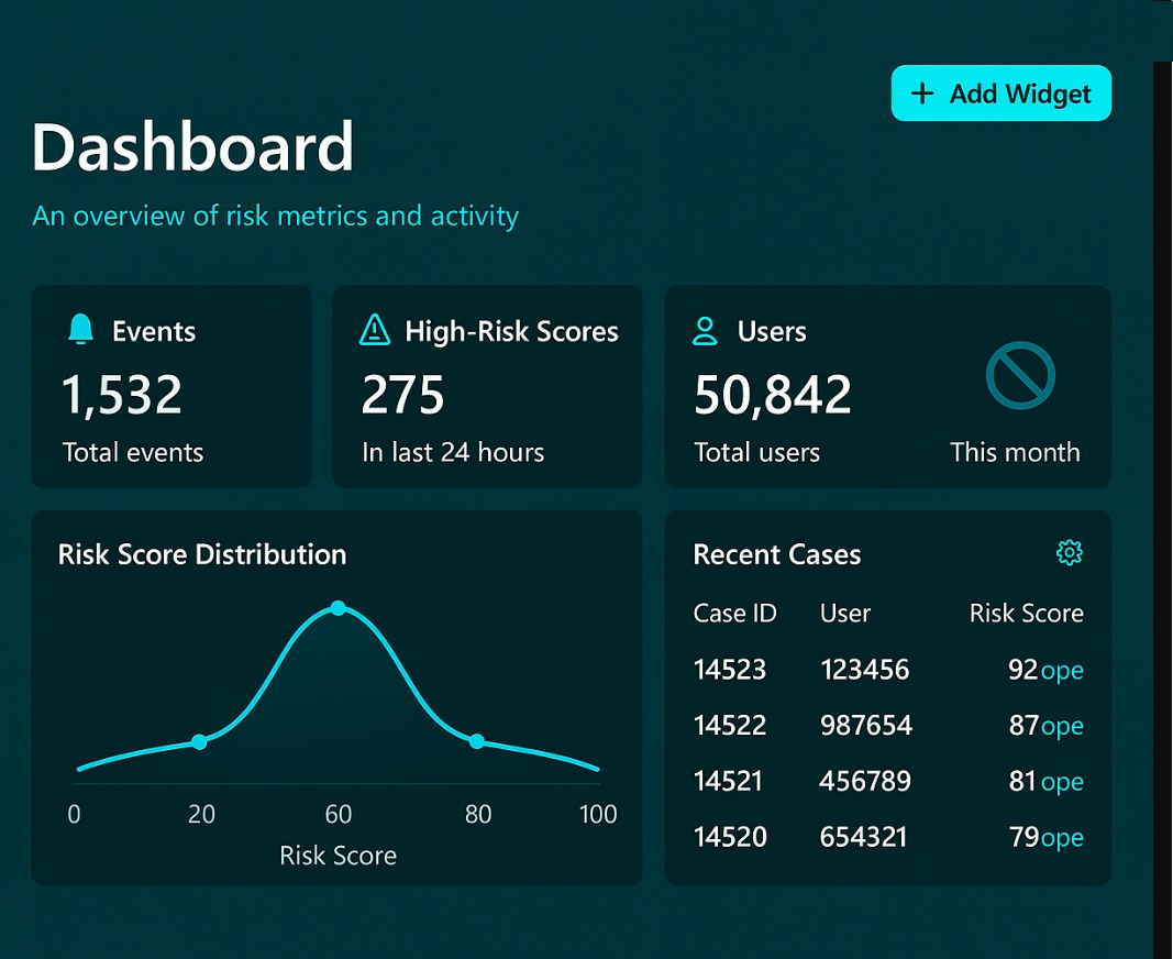 A unified interface for real-time risk intelligence, decisioning, and oversight. Vaivera provides visibility into signals, scores, cases, and outcomes along with clear explanations for every decision.